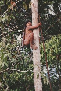 Heute durften wir mit auf die Jagd. Schon in der Früh marschierte eine Gruppe Jäger mit ihren Blasrohren los und nahmen den toten Ozelot mit, der einige Tage in der Sonne lag, vermutlich um Beute anzulocken. Unser Jäger bestrich bedächtig seine Pfeile für das Blasrohr mit dem Gift Curare, dessen Herstellung wir gestern sahen. Als die Pfeile trocken waren, marschierten wir los. Tolle Atmosphäre - der Urwald war wie immer erfüllt von großem Lärm, besonders die Brüllaffen und die Baumzikaden übertönten alles. Unser Jäger zeigte uns viel und schlich sich am Boden lautlos an - vergeblich. Er kletterte auch mittels eines Lianenringes schnell und lautlos auf einige Bäume, aber es half nichts. Da wir dabei waren und zuviel Lärm machten hatte er kein Jagdglück. Aber die andere Gruppe brachte einige Brüllaffen und einen Hühnervogel mit.